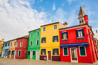 6. La siguiente imagen se caracteriza por los marcados colores que se manifiestan en las paredes de las casas y el cielo. Aparecen los colores cálidos (rojo,amarillo), estos transmiten sensaciones de vitalidad acción e impulso, sin embargo aparecen también colores fríos , como elazul o el verde, que transmiten calma y serenidad.